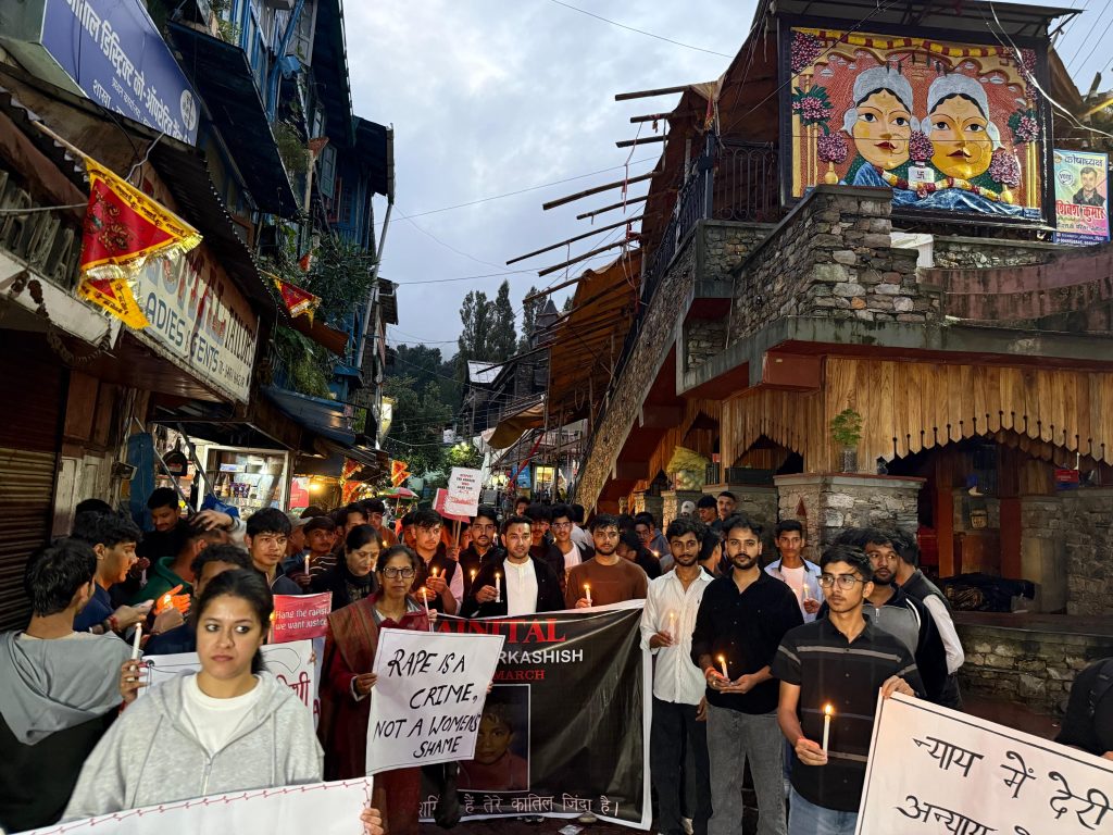 नैनीताल । छात्र नेता शार्दुल नेगी व उनके बुल्स जिम के युवाओं द्वारा काठगोदाम शीशमहल में हुए कशिश हत्याकांड के दोषियों सजा दिलाने व कशिश को न्याय दिलाने के लिए बुधवार की शायं कैंडल मार्च निकाला गया। यह मार्च राम सेवक सभा से प्रारम्भ होकर तल्लीताल गांधी चौक तक गया ।