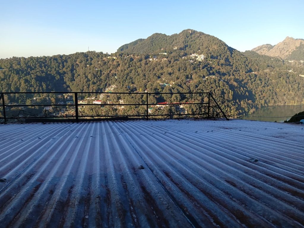 नैनीताल । नैनीताल में इन दिनों रात्रि में तापमान में भारी गिरावट आ रही है । रात्रि में पड़ रहे पाले से घरों की छतें सफेद हो जा रही हैं । जिससे सुबह के समय छतों में बर्फ जमा होने का भ्रम हो रहा है ।