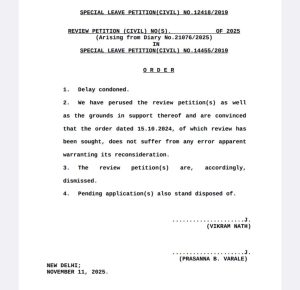 नई दिल्ली । सुप्रीम कोर्ट ने उत्तराखंड सरकार द्वारा दायर की गई दर्जनों पुनर्विचार याचिकाओं को 11 नवंबर, 2025 को खारिज कर दिया है।