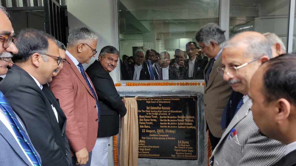नैनीताल । हाईकोर्ट परिसर स्थित न्यू अधिवक्ता चैम्बर में बने “एडवोकेट कॉमन चैम्बर ब्लॉक” का शुक्रवार मुख्य न्यायधीश जी. नरेन्द्र द्वारा उद्घाटन किया गया ।