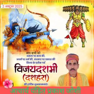इस बार दिनांक 2 अक्टूबर 2025 दिन गुरुवार को विजयदशमी पर्व मनाया जाएगा। इस दिन यदि दशमी तिथि की बात करें तो 32 घड़ी 35 पल अर्थात शाम 7:11 बजे तक दशमी तिथि रहेगी तदुप्रांत एकादशी तिथि प्रारंभ होगी। यदि नक्षत्र की बात करें तो इस दिन उत्तराषाढा नामक नक्षत्र सात घड़ी 40 पल अर्थात प्रातः 9:13 बजे तक है तदुपरांत श्रवण नक्षत्र उदय होगा। यदि योग की बात करें तो इस दिन सुकृति नामक योग 43 घड़ी 17 पल अर्थात मध्य रात्रि 11:28 बजे तक है। इस दिन तैतिल नामक करण दो घड़ी 37 पल अर्थात प्रातः 7:12 बजे तक है। सबसे महत्वपूर्ण यदि इस दिन के चंद्रमा की स्थिति को जानें तो इस दिन चंद्र देव पूर्ण रूपेण मकर राशि में विराजमान रहेंगे।