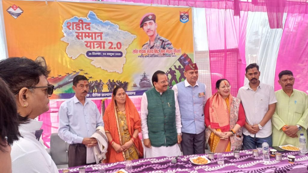 उत्तराखण्ड राज्य में 22 सितम्बर 2025 से 04 अक्टूबर 2025 तक शहीद सम्मान यात्रा 2.0 का आयोजन किया जा रहा है। इससे पूर्व, वर्ष 2021 से पूर्व के बीर बलिदानी सैनिकों को सम्मानित करते हुए उनके घर के आंगन से पवित्र मिट्टी एकत्रित कर सैन्यधाम में प्रतिस्थापित की गयी थी। शहीद सम्मान यात्रा 2.0 का उद्देश्य वर्ष 2021 के बाद जो सैनिक वीरगति को प्राप्त हुए है उनको सम्मानित करते हुए उनके घर आंगन की मिट्टी को एकत्रित कर सैन्य धाम में प्रतिस्थापित किया जाना है।