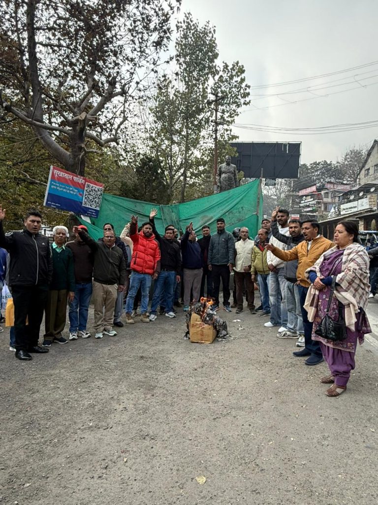 नैनीताल । प्रदेश कांग्रेस नेतृत्व के आहवान पर शुक्रवार को नगर कांग्रेस कमेटी, नैनीताल द्वारा नगर अध्यक्ष अनुपम कबड्वाल के नेतृत्व में “एस्मा एक्ट” लागू करने के विरोध में प्रदेश सरकार का पूतला फूंक कर विरोध प्रदर्शन किया गया।