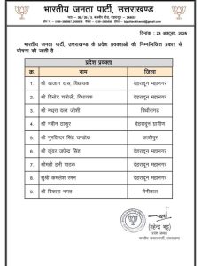 देहरादून । भाजपा प्रदेश अध्यक्ष महेंद्र भट्ट ने प्रदेश प्रवक्ताओं की नियुक्ति की है । जिनमें वरिष्ठ विधायक व पूर्व प्रदेश अध्यक्ष बंशीधर भगत के पुत्र विकास भगत को भी प्रदेश प्रवक्ता नियुक्त किया गया है ।